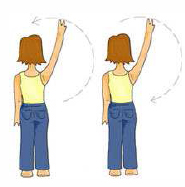 | Sitúese frente a una pared. Con el brazo afecto dibuje un círculo lo más grande posible, primero en un sentido y luego en el otro. |
